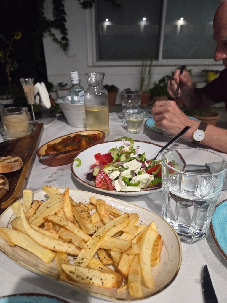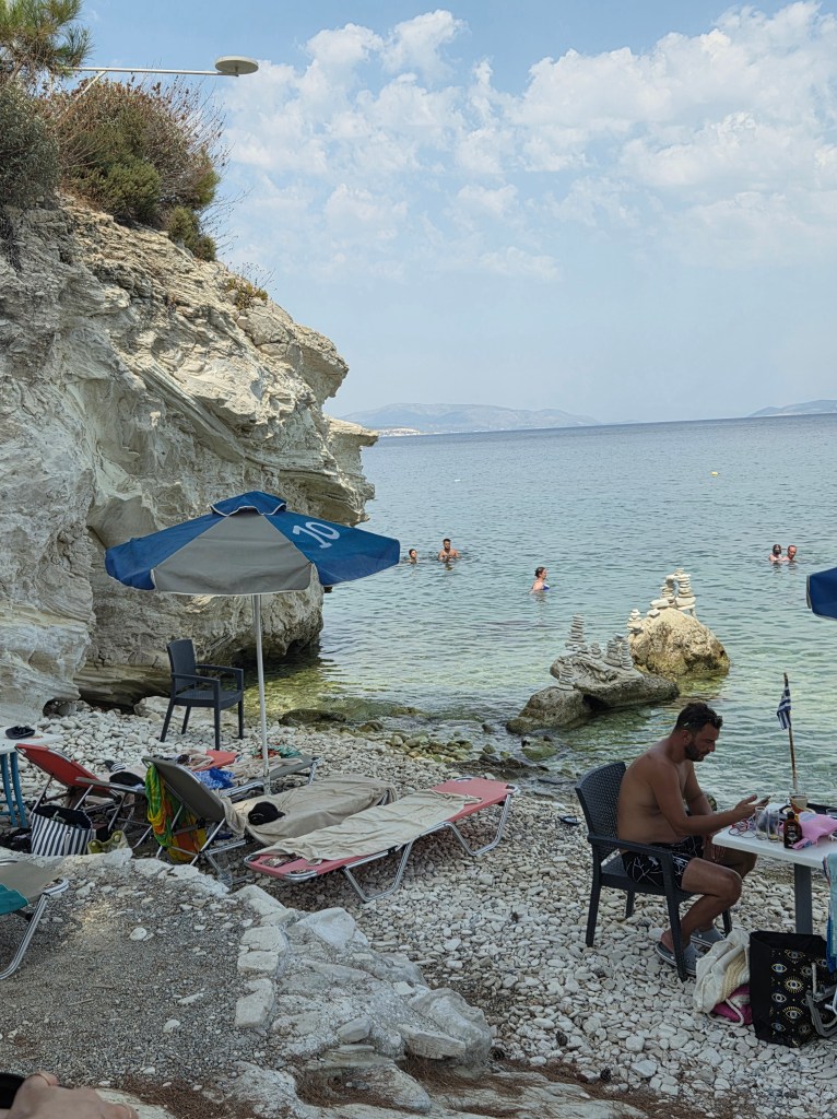 In addition to being expert cooks, olive oil producers, ouzo and winemakers, Samians have a long tradition in pottery-making. Growing up in Mavratzaioi, my husband remembers 4 or 5 expert pottery makers who would carry their wares on the backs of donkeys to various villages across the island. Of course, large water jugs were the main product sold. Through evaporation, the water in the jugs could remain cold for hours.